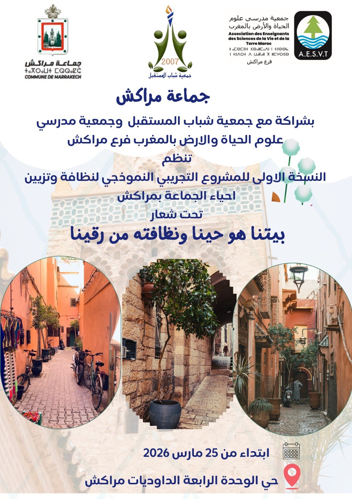 يأتي هذا المشروع ثمرة شراكة استراتيجية بين جماعة مراكش، وجمعية شباب المستقبل، وجمعية مدرسي علوم الحياة والأرض بالمغرب (فرع مراكش)، متخذًا من شعار “بيتنا هو حينا ونظافته من رقينا” عنواناً عريضاً لعملياته الميدانية.