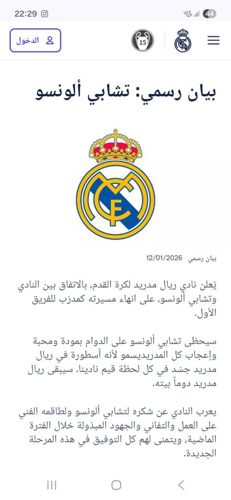 ​واختتم ريال مدريد بيانه بتمني التوفيق والنجاح لألونسو في خطوته المهنية القادمة، وسط حالة من الترقب في الأوساط الرياضية حول هوية المدير الفني الجديد الذي سيخلفه في “سانتياغو برنابيو”.